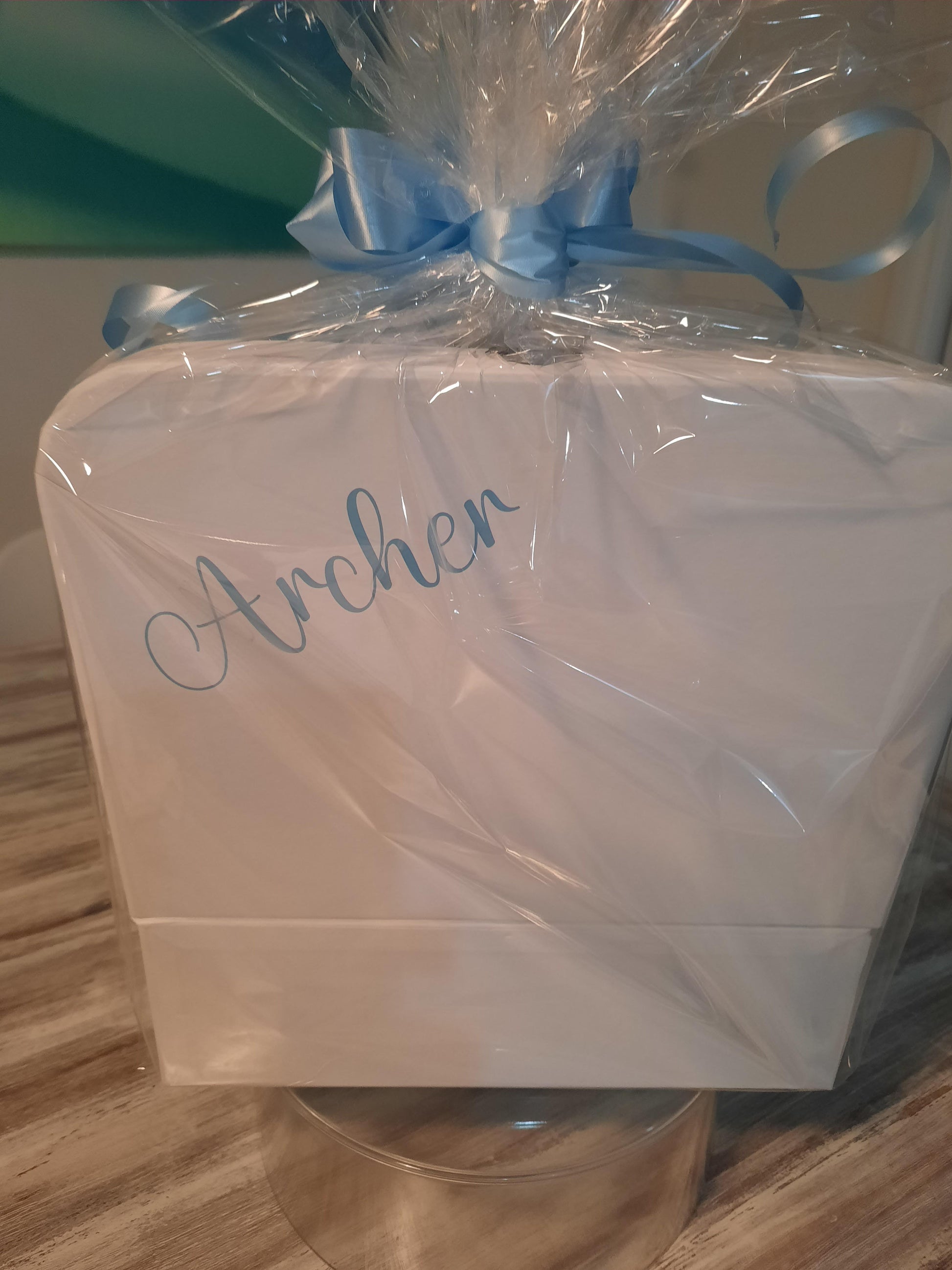 Gift packs with assorted items of your choosing all personalised with baby's name.