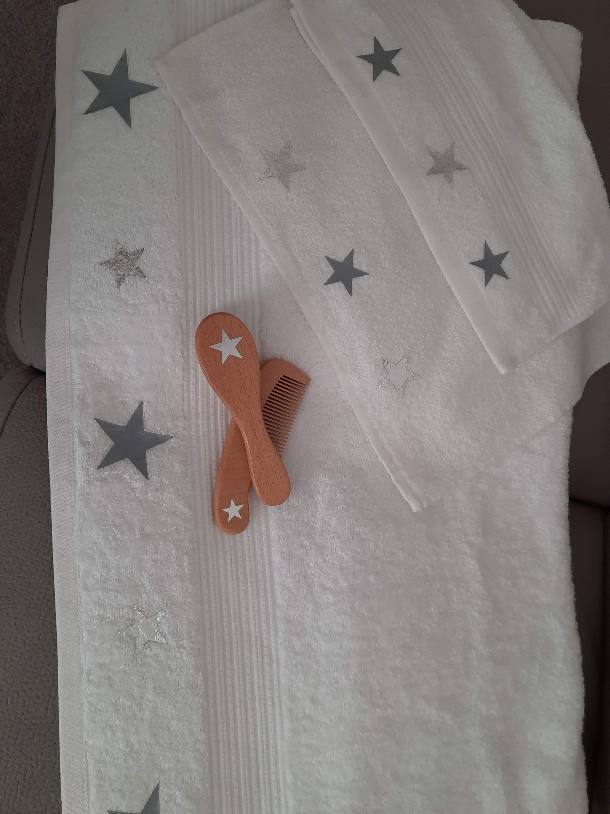 Wooden brush and comb set, personalised with baby name or pictures.