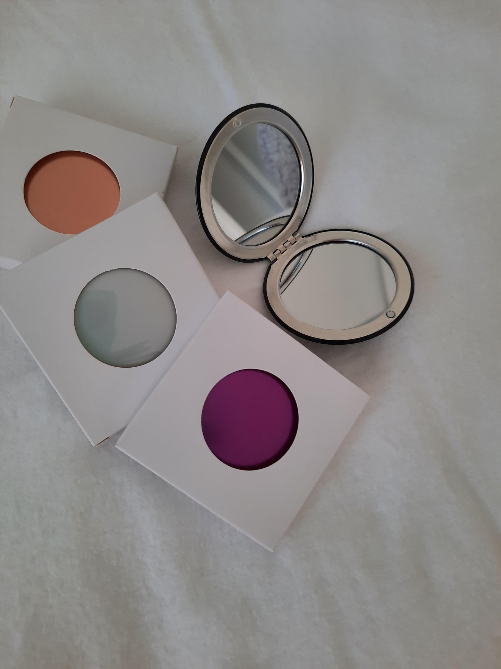Compact mirrors available in silver, black, rose gold and purple, initials or a name can be added.