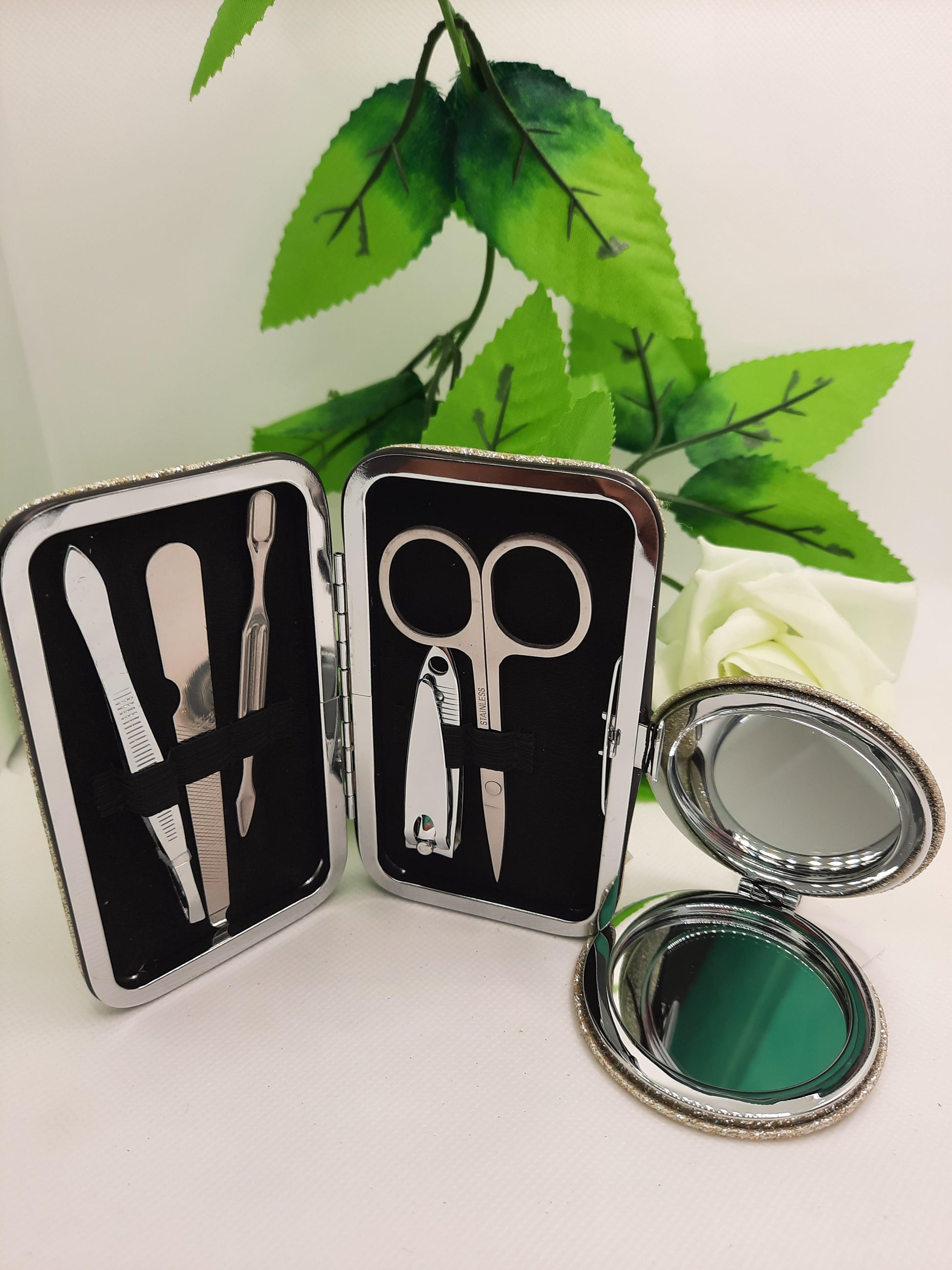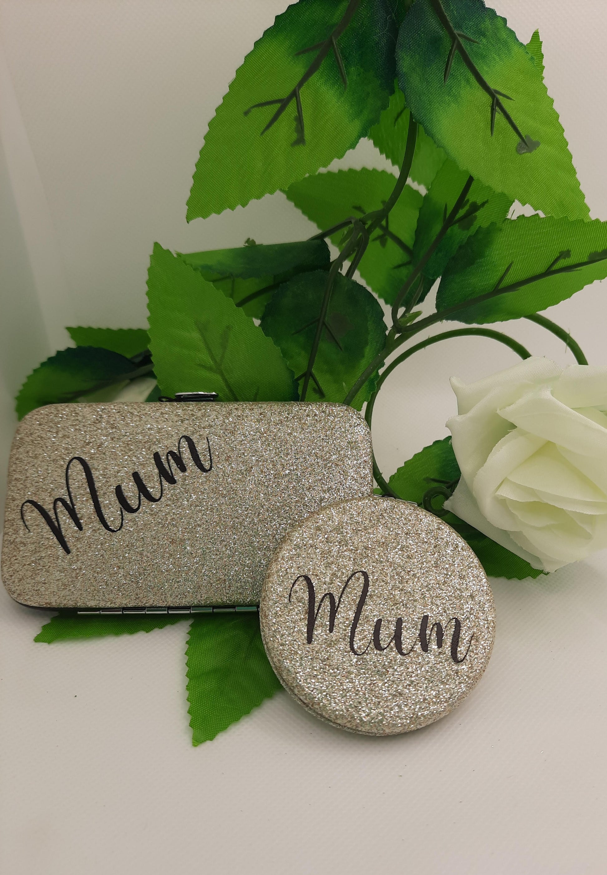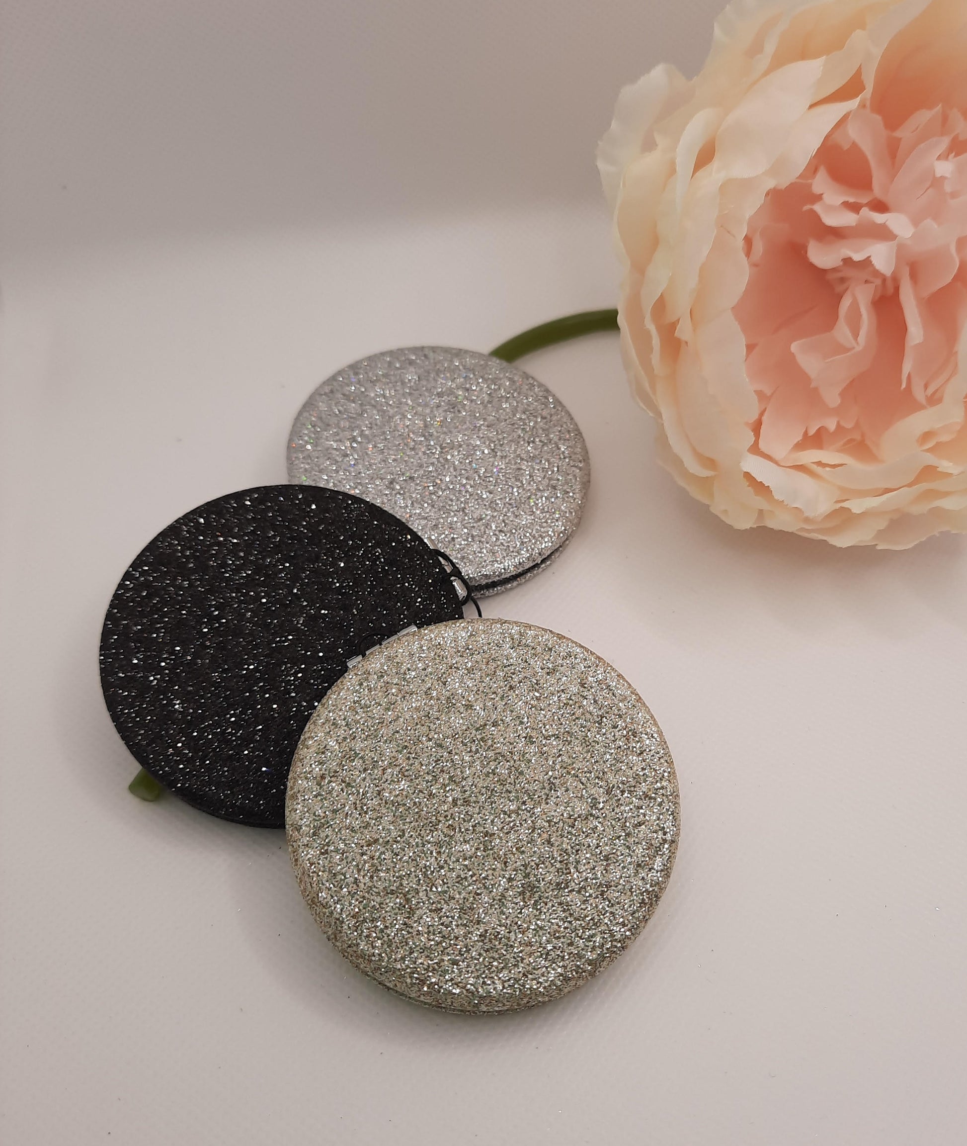 Glitter Mirror to match Manicure set in Black, Silver, or Rose Gold glitter, can be personalised with name, initials, or your choice.